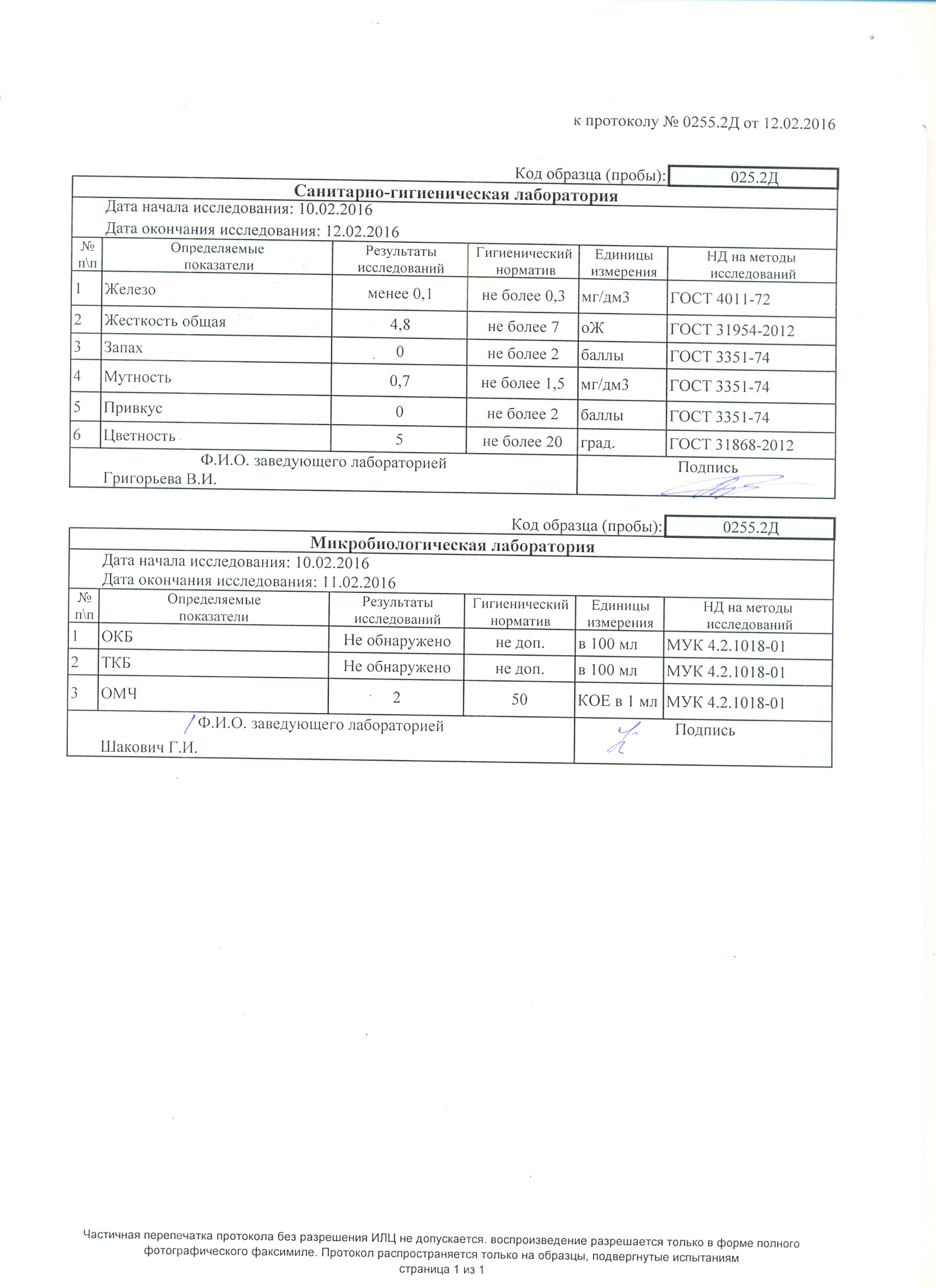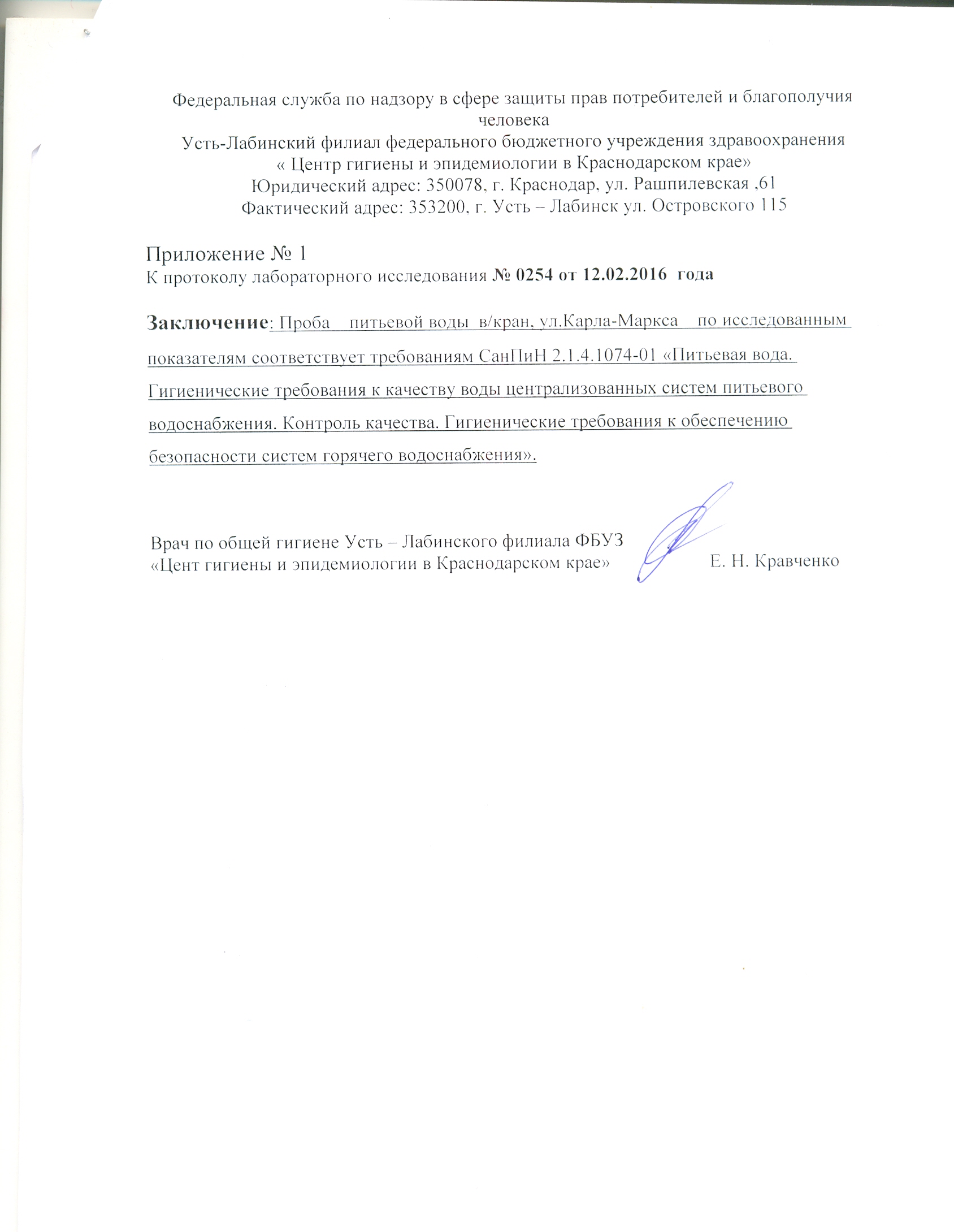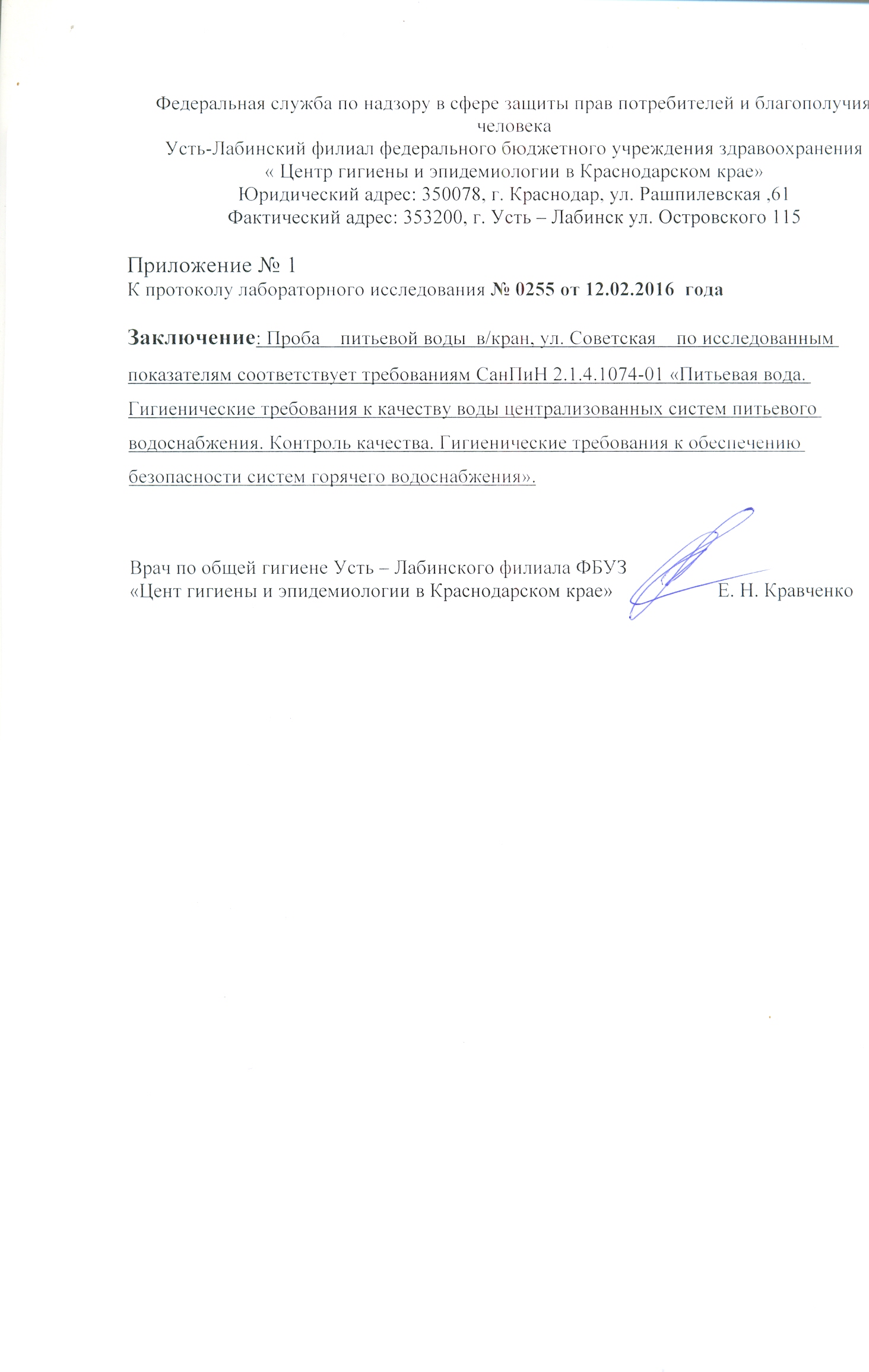 Сведения о качестве воды 2016 год