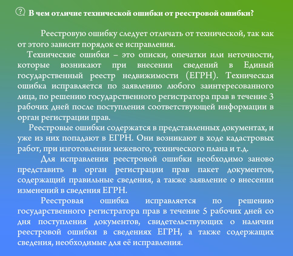 Кореновский отдел Росреестра по Краснодарскому краю разъясняет отличия реестровой и технической ошибки