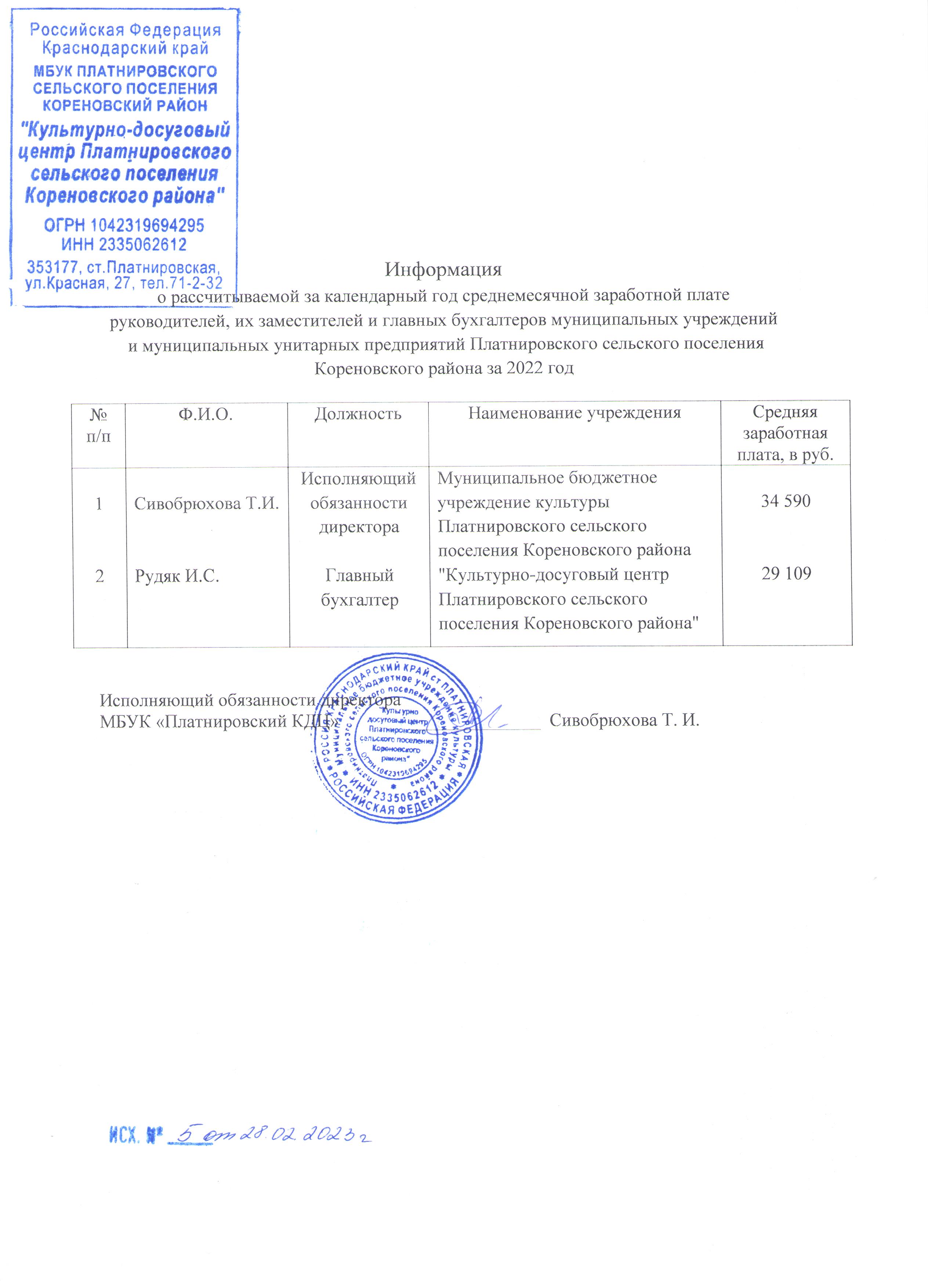 - Информация о среднемесячной зп за 2022 год МБУК Платнировский КДЦ.jpg [ Скачать ]